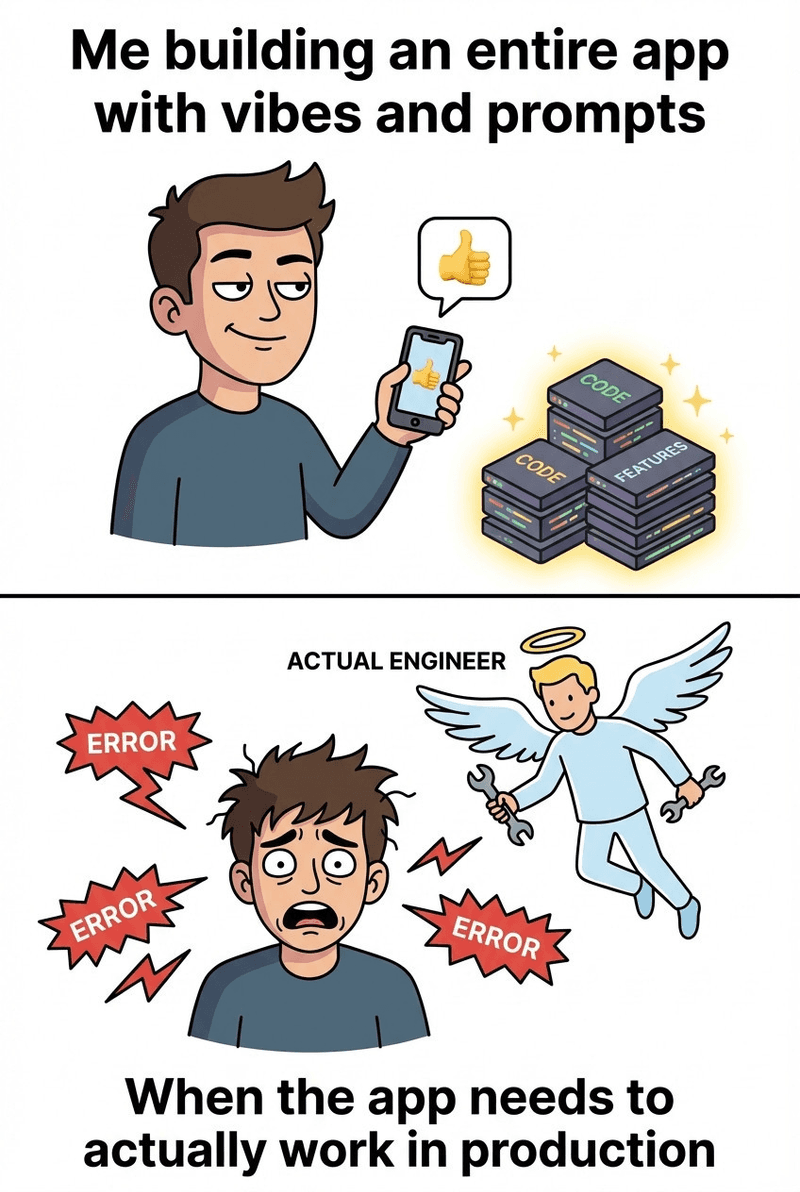 Laten we eerlijk zijn over wat er ontbreekt als je je weg naar een werkende app vibe-codet.