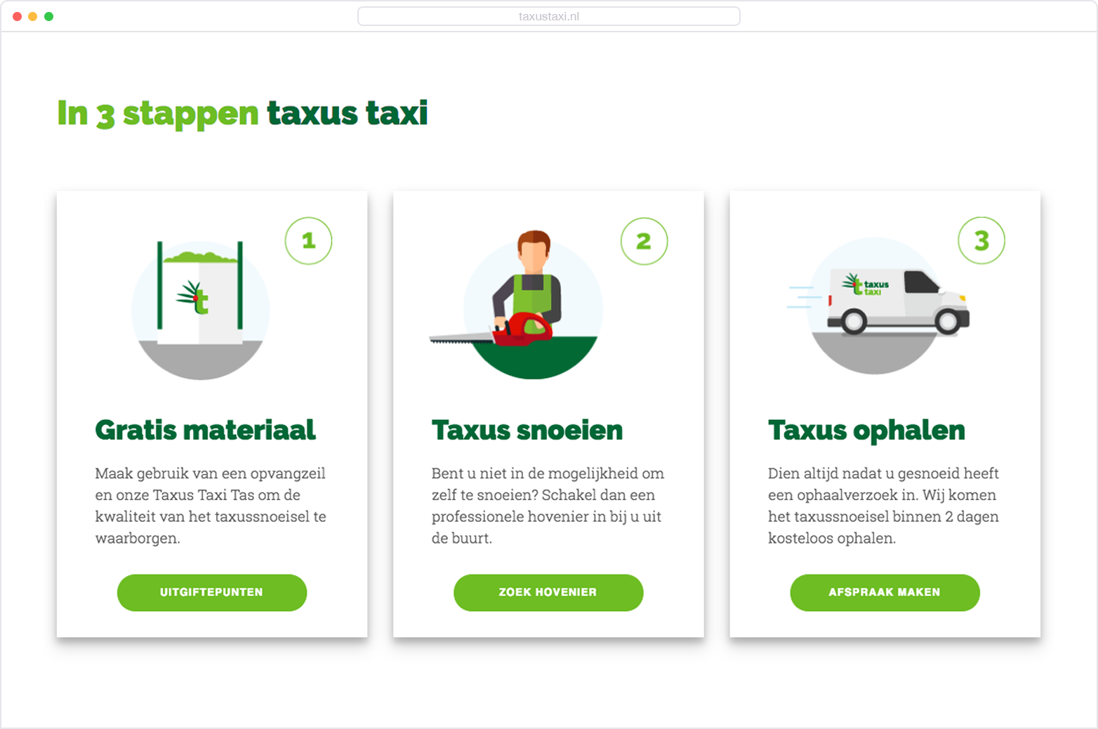 De nieuwe website van Taxus Taxi is geoptimaliseerd om het maken van een afspraak zo gemakkelijk mogelijk te maken. Voor de kwaliteit van het taxus is het van belang dat men zich tijdens en na het snoeien aan een paar regels houdt. Die worden ook overal door de website en in de verdere communicatie per e-mail of telefoon duidelijk gecommuniceerd.